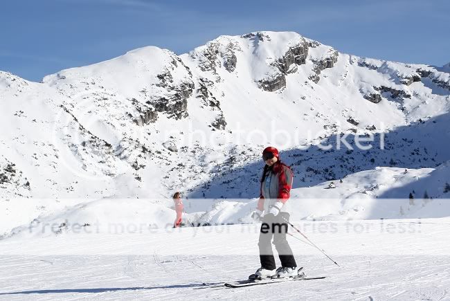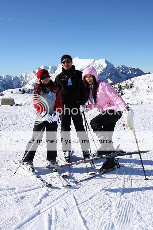 这个牵引是平坦的儿童道上的,别说我啦,连刚学会的小云都不愿意在这玩。但是小云说,得给没穿上滑雪板看不到高处风光的超视觉同学找点事情做,好让他也有点成就感而不至于太郁闷,所以我们才特意跑到儿童堆里摆POSE让他给拍照的。