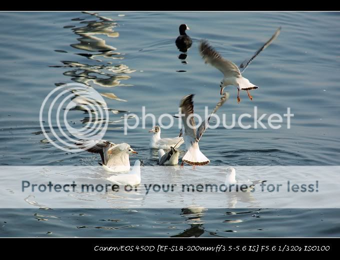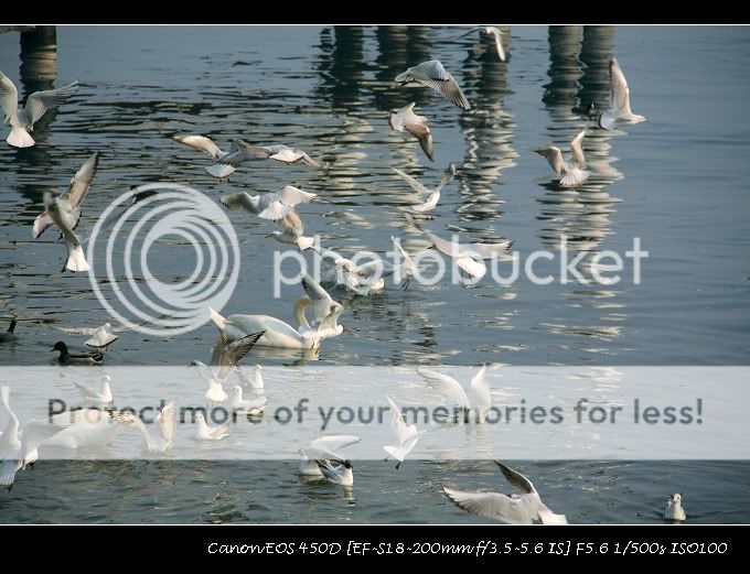 这是第一次用长焦拍远处的水鸟,没有经验。回来看片子后总结一条,构图要做减法,不可贪多,单独盯住一两只水鸟拍才能拍出神韵。昨天那鹅啊鸭啊鸥啊扑啦啦飞成一片的时候,俺狂按了很多下快门, 结果出来的照片毫无构图可言,就象下面这张一样感觉满鼻子满脸的都是翅膀:)