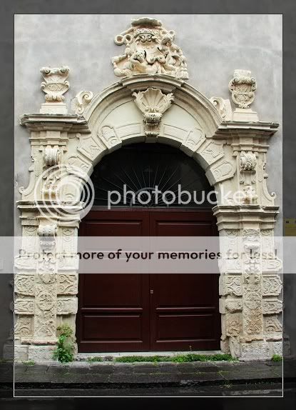 图十六:一家博物馆的大门,这种火山灰涂墙面加上白色大理石雕画门窗的装饰手法是CATANIA的典型风格,谁让这个城市就在火山脚下呢!