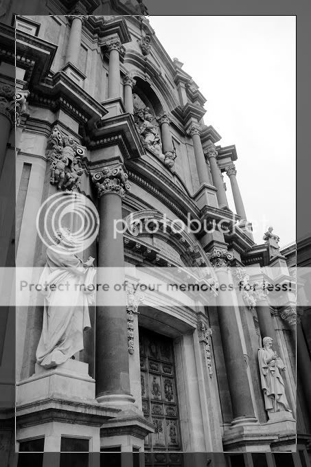 图五、六两张都是DUOMO大教堂的细节。我总有一种要把CATANIA的照片处理成单色的冲动。因为画面上的线条太多太复杂了,再加上色彩真的有点让眼睛吃不消,还是单色看着顺眼。