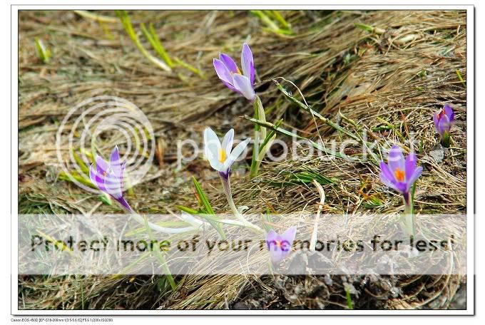 图7,8: 这些小花我叫不出名字, 每年山上雪刚开始融化, 它们就迫不及待从旧年的枯草丛中甚至直接从残雪里就钻出来了。