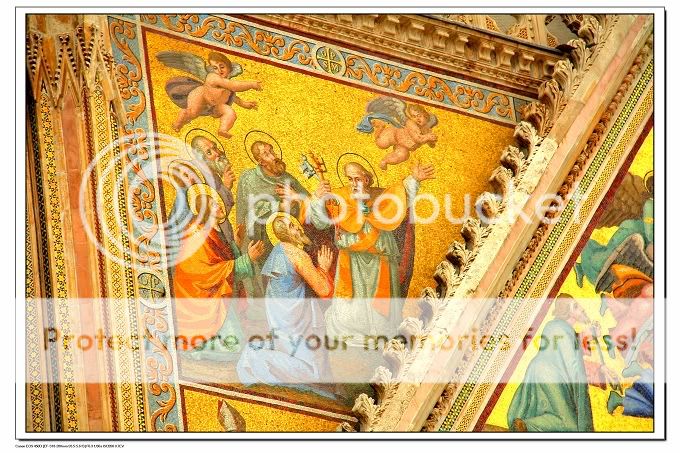 教堂正面布满这样的金底镶嵌画,显得非常辉煌。
