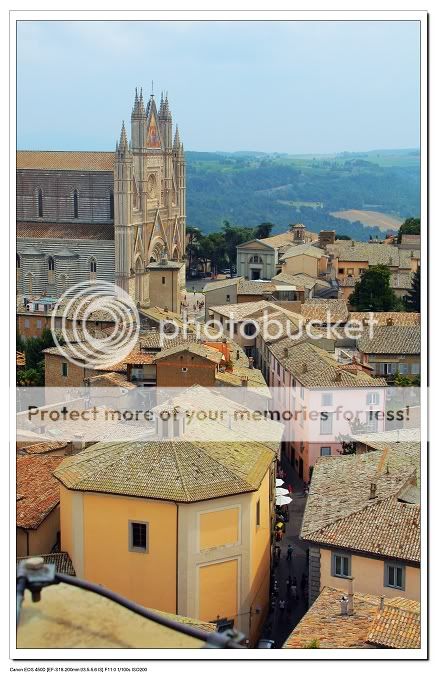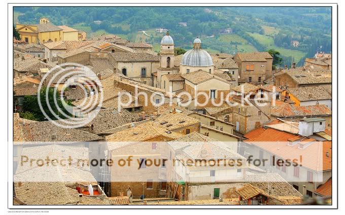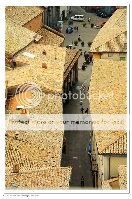 ORVIETO市中心有一座42米高的大方塔。站在塔顶,可以俯瞰全城,眺望周围的青翠山谷。虽然我们去的那天山雨欲来,光线很不好,可那景色,依然如画。
