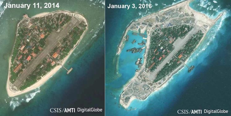 中国2013年以来,才开始在南中国南海南沙群岛扩建三个人工岛屿。