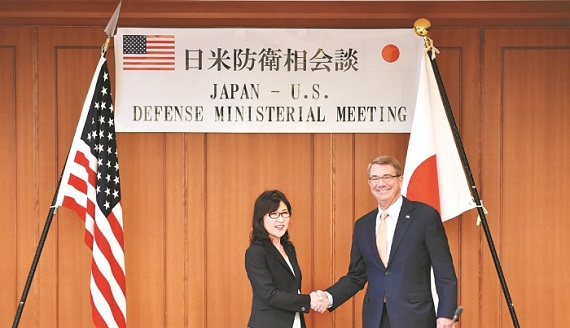 日本防卫部长稻田朋美在日本防卫部內举行的会谈一开头表示:“由于卡特部长的领导能力,日美同盟得到深化和加强。”卡特回应说:“我们的同盟是亚洲地区的关键,今后在维护和平方面也是绝对需要的。”确认了根据去年修订的《日美防卫合作指针》加快两国合作的方针。