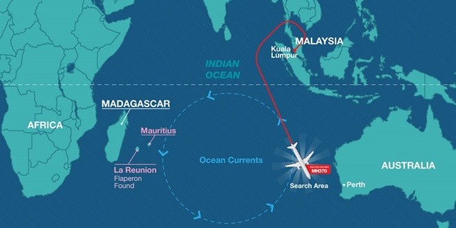 载有239名乘客及机组人员的马航MH370客机,2014年3月8日由吉隆坡起飞前往北京途中失踪,至今下落不明。由澳大利亚、中国、马来西亚的搜索团队判断,客机在南印度洋上空终结。不过,搜索团队在12万平方公里的搜索区內,仍未发现客机残骸。