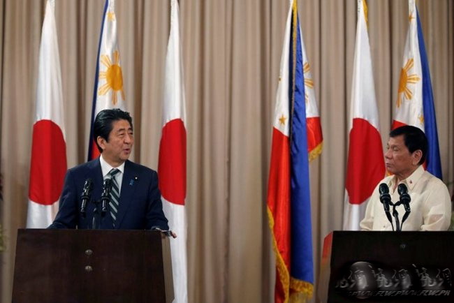 1月12日,安倍晋三与菲律宾总统杜特尔特在马尼拉召开联合记者会。