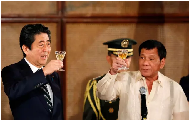 安倍昨晚抵达杜特尔特老家达沃市访问
