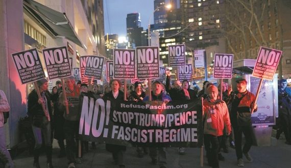群众不分男女老少、各族裔皆有,抗议标语更是五花八门,包括“大便总统”、“俄罗斯选出的假总统”、“纽约人要爱不要恨”、“明天就职日就是民主之死日”、“向特朗普说不”、“特朗普不是我们的总统”、“停止特朗普的法西斯主义者”等。