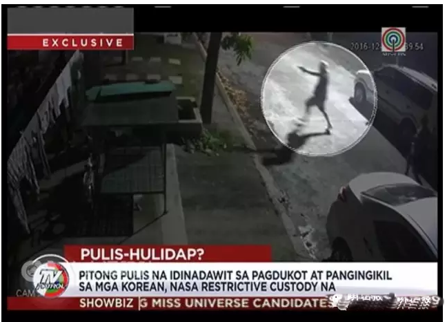 菲律宾不法警察“假办案真勒索”恶行接连曝光引发菲律宾媒体谴责,近日菲律宾ABS-CBN电视台播出其中一案的监视器录影画面,涉案菲律宾警察在韩国旅游观光客住处前追人,还一度亮枪威吓,过程十分粗暴。