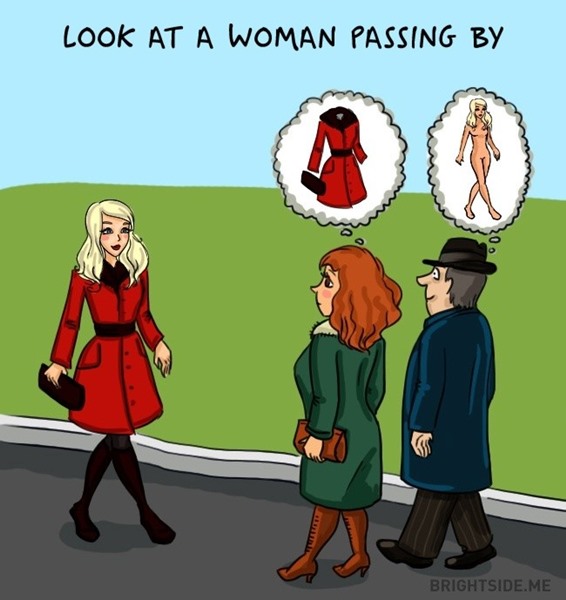若路上看到一位打扮华丽的女子,女生会从上到下打量她的“行头”,男生则是会脑补她衣服里面的“风景”,哈哈哈,没错吧?
