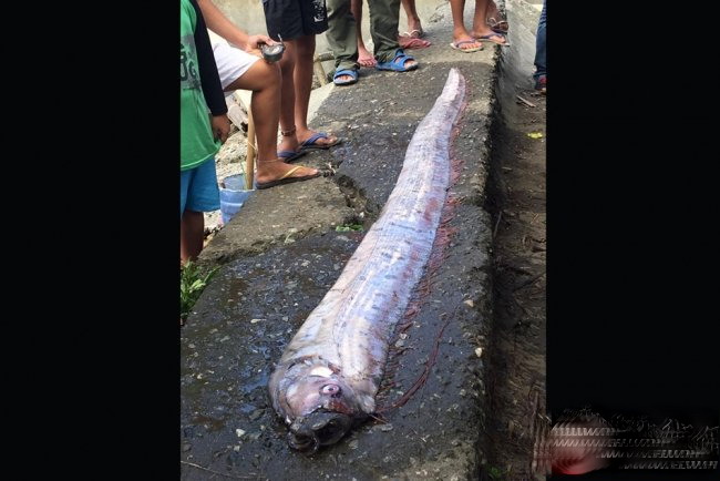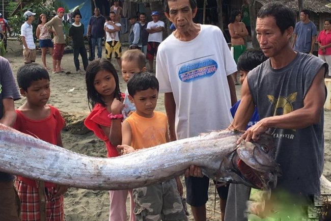 菲律宾媒体报道,菲律宾一名渔民近日在北阿古桑省(Agusan del Norte)位于 Buenavista 镇附近的海域捕获了一条巨型皇带鱼。