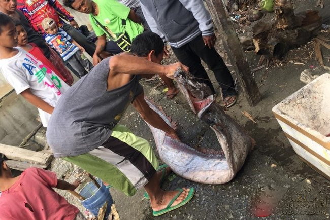 这条巨型皇带鱼大约有10英尺长。在菲律宾当地渔业与水产资源局的指示下,渔民随后立即与 Buenavista 镇的居民一起将它给埋到土里了。