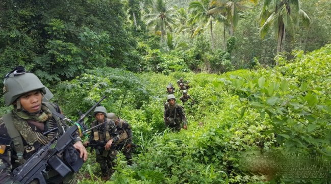图为菲律宾精锐部队去年8月在苏禄岛茂密丛林寻找恐怖分子的踪迹。