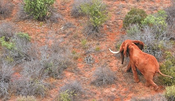 2月在肯尼亚西察沃国家公园,在追纵一头佩戴有定位项圈的大象。