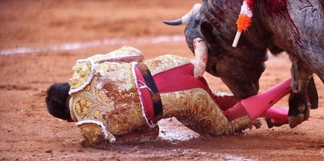 墨西哥的一名斗牛士,本月20日在墨西哥市演出时发生意外,斗牛士遭公牛撞倒,这头长着28公分牛角的公牛低头猛冲,结果牛角直接插入斗牛士臀部,造成斗牛士肛门附近括约肌受伤,也吓得现场观众惊叫不停。