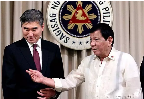 菲律宾总统府发言人阿贝拉在声明中说,美国驻菲大使金圣镕到达沃市礼节拜访了杜特尔特,他们讨论了菲美关系。