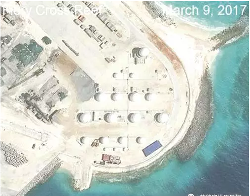 隶属于战略与国际研究中心(CSIS)的亚洲海事透明度倡议(AMTI)表示,在南沙群岛的永暑礁、渚碧礁、美济礁的工作包含海军、战机、雷达、防御设施。