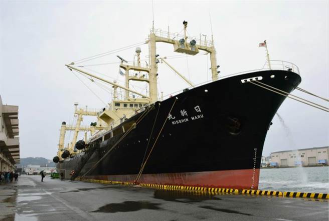 这次从南极返回的5艘捕鲸船之一:日新丸号。