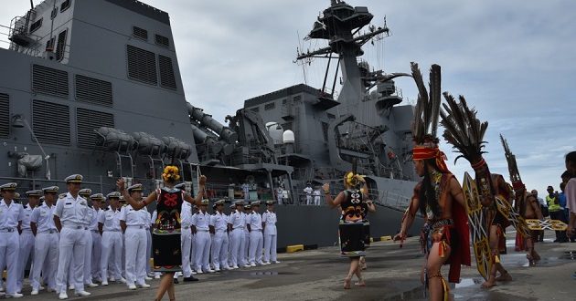 马来西亚沙巴州旅游局呈献传统舞蹈欢迎日本军舰。