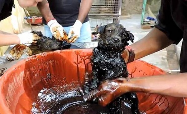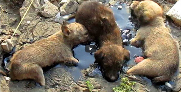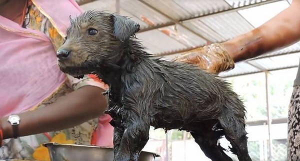 印度拉贾斯坦邦(Rajastan)有3只小狗惨遭柏油黏住四条小狗腿,导致困住动弹不得。所幸附近居民听见小狗的哀呜后,发现它们被困的窘境,随即电话通知了当地的动保团体“动物无限救援”(Animal