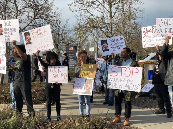 克拉克遭到误杀后,沙加缅度的黑人人权团体上街抗议。