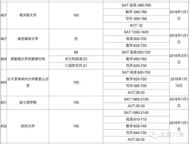 在美国大学开放2016年录取之前,USNEWS抢先公布了2016年美国top100名校申请托福最低成绩要求和SAT平均成绩说明。
