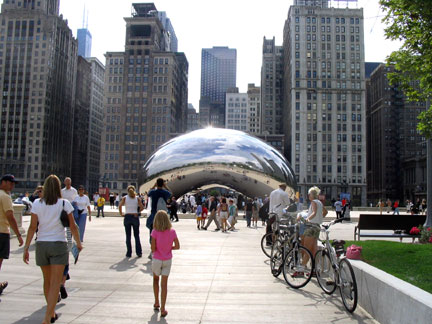 上个星期六,我陪伴远道而来的两位老人参观了芝加哥艺术博物馆。午餐后,我们漫步走入与艺术馆相隔不远的千禧公园。那里熙熙攘攘的人流、欢蹦乱跳的孩子们、随意躺在草坪上享受阳光轻风的男女老幼和我们居住的人迹稀落的郊区形成极大的反差,到处都洋溢着盛大节日般热闹欢欣的气氛。