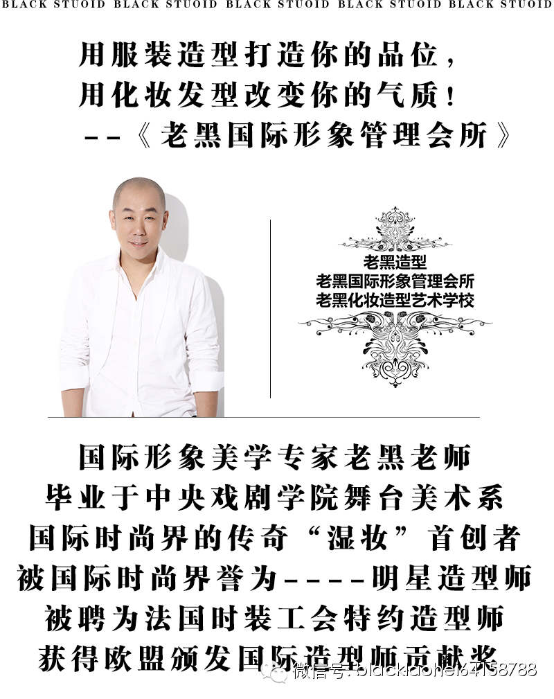《老黑国际形象管理会所》完全一对一的为您量身定制形象管理方案,不论是商务场合,名流云集的高端晚宴,我们都能让您以最完美的形象出席,打造优雅中国人是我们的理想。