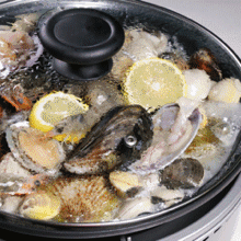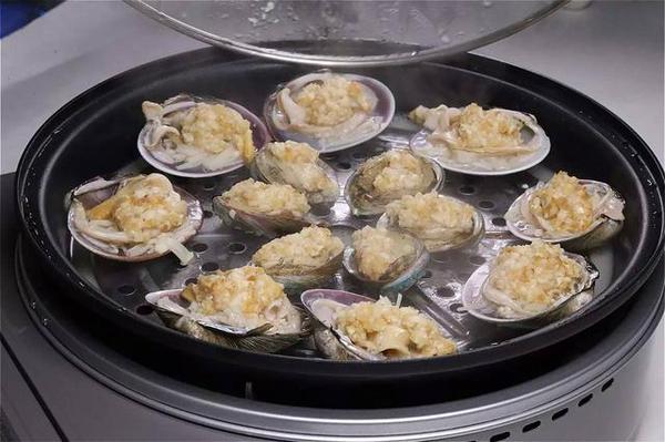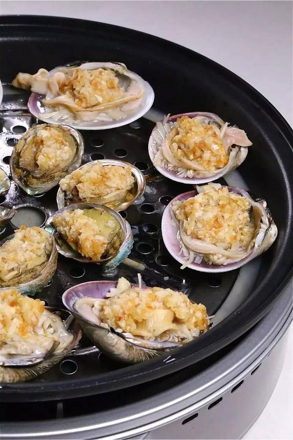 将新鲜的大连鲜鲍和贵妃蚌用简单的蒜盐隔水清蒸,海鲜的鲜汁和蒜蓉汁完美的结合在一起,吃肉的时候记得要把贝壳里的汤汁一起送入嘴巴里,那个蒜香鲜爽味会冲击这个鼻腔,哇,太棒了。
