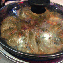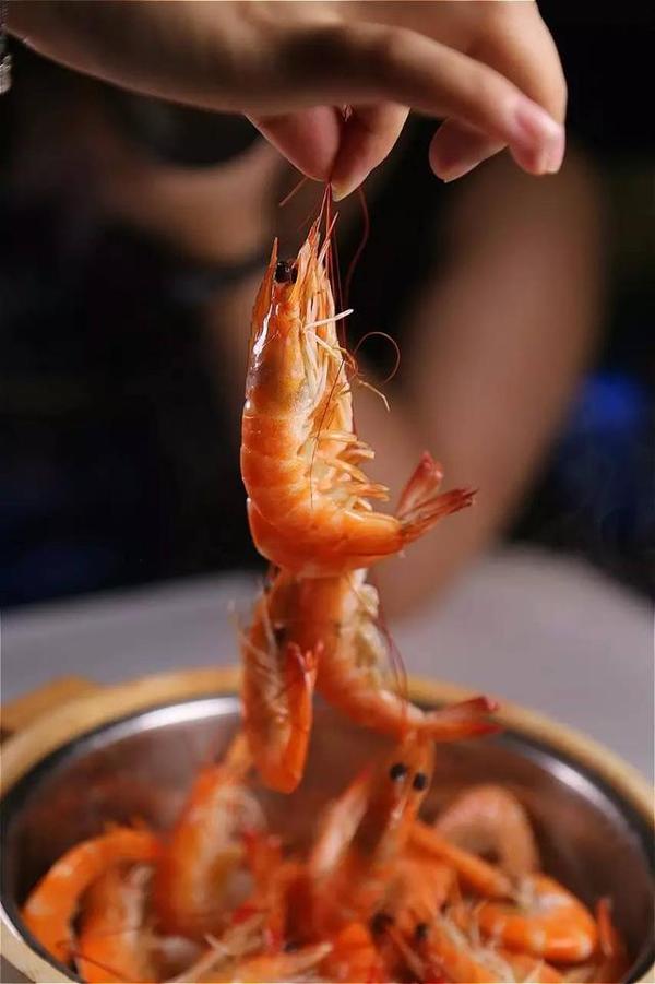 虾子刚好烫熟,哇,那种鲜甜度,让人仿佛倘若在幸福的海洋里一样。
