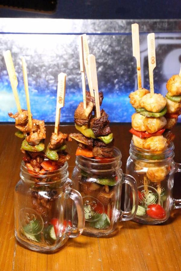 包括了串烧五花肉,串烧牛腩筋,串烧丸子,串烧鸡杂,烧烤的孜然味道,在这里静静的绽放了。