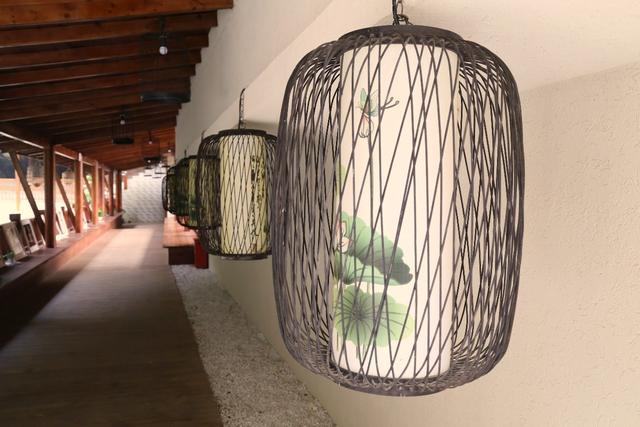 这里装饰最特别的地方是,设计者将传统艺术融进了民宿,所有灯罩都和清新区鸟笼工艺、竹器编织工艺、木器工艺、陶艺和藤艺等传统手工艺制品结合,极具艺术感。