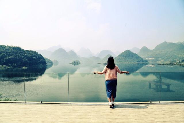 走下鹅卵石和石板结合的楼梯,平静如镜的水库,连绵起伏的山峦,仿佛走入了山水画的世界里,人也成为了风景画的一部分。