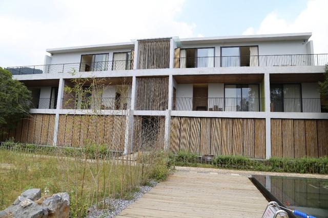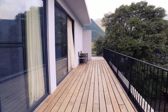 每一个房间,四面环绕着露天阳台,在阳台上能看到连绵不断的青山绿水,我忍不住在这无边无际的田野和山林里呐喊:好舒服啊。