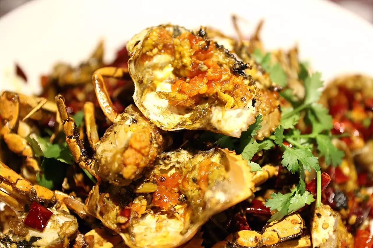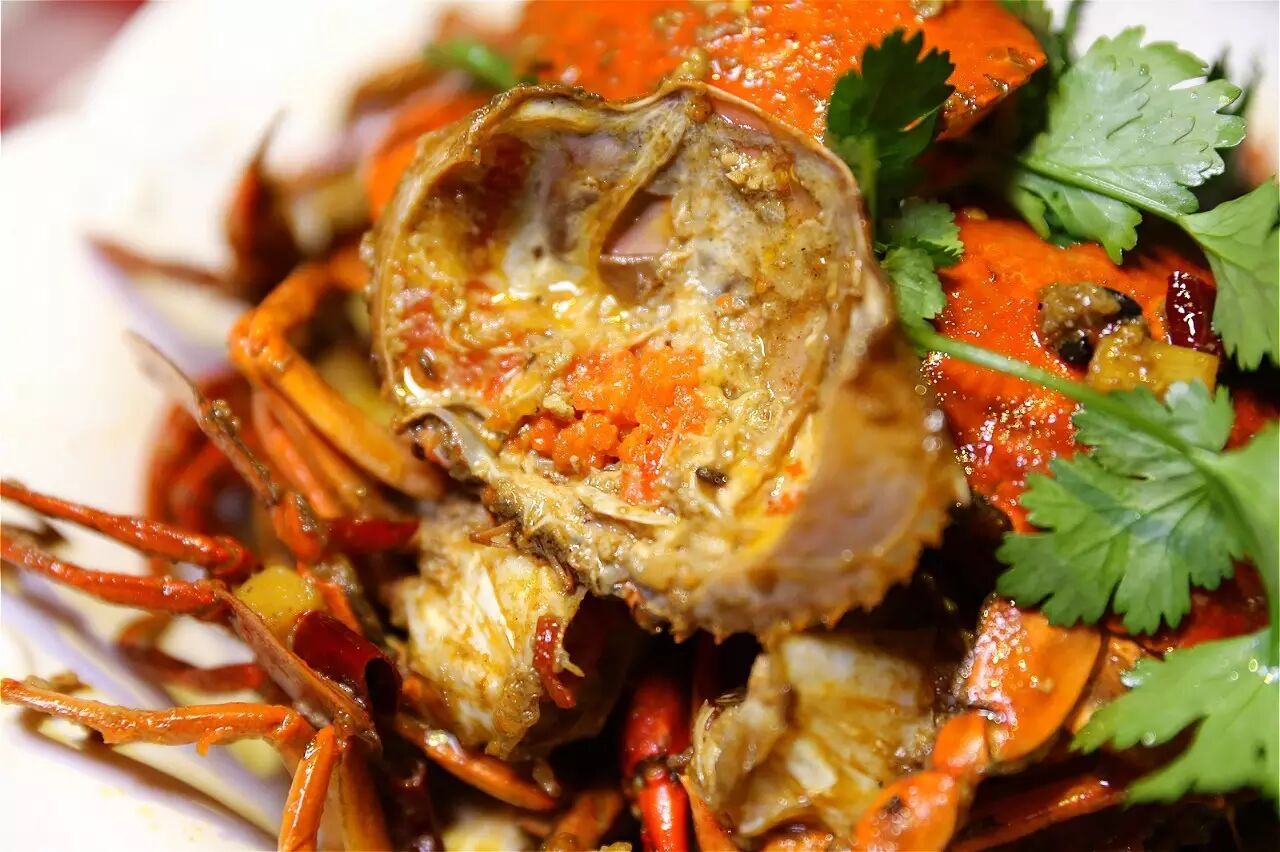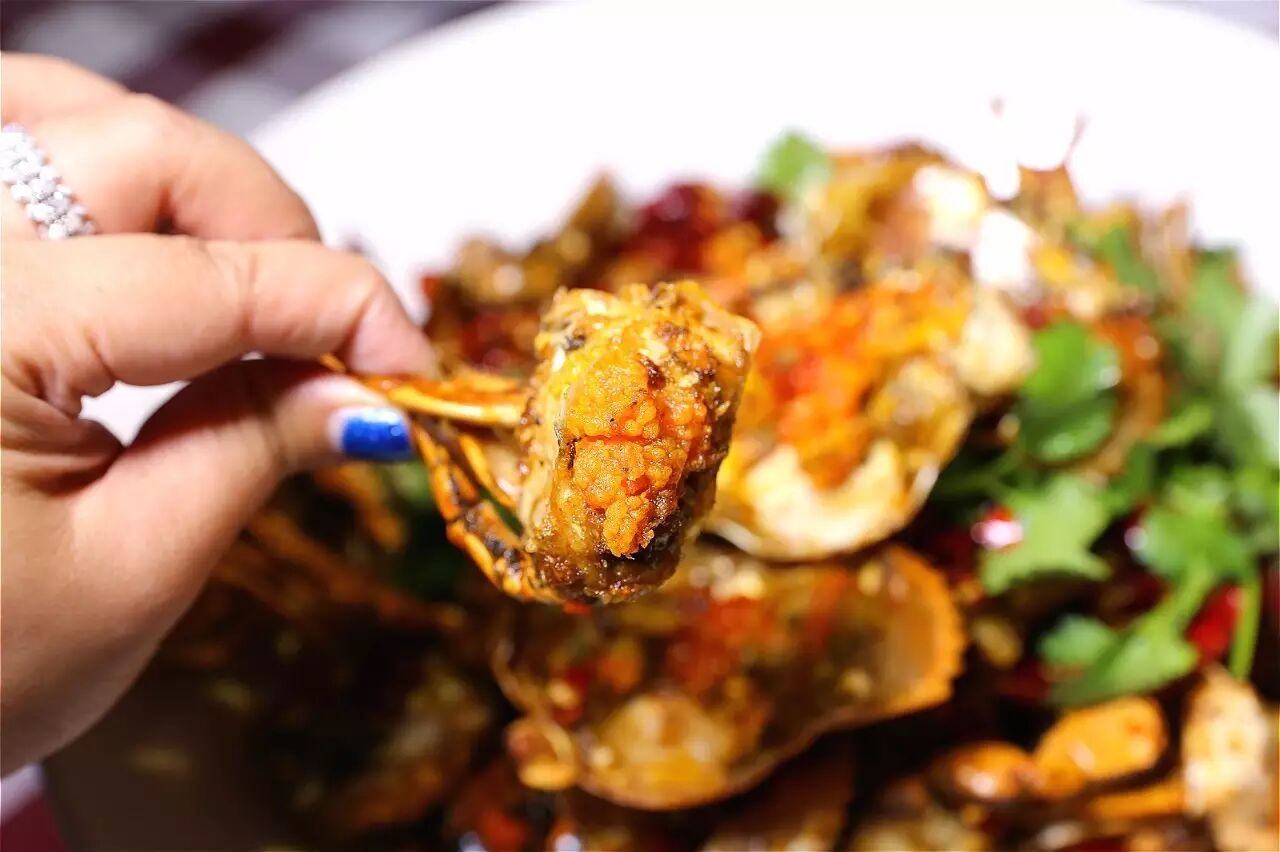满满的蟹膏,因为做法和油焖有点不一样,经过了油炸再做香辣,蟹膏会更加紧实的贴在蟹肉上。而蟹肉经过了油炸,会更加紧实。如果让我去比较,我会喜欢香辣的膏和油焖的肉,好纠结的选择,所以任性的方法就是两样都吃了。
