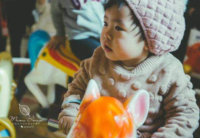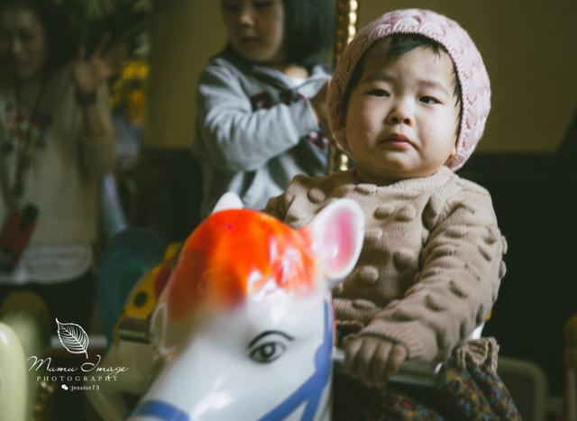宝宝激动了,坐上了最爱的旋转小马,前一秒还在哭,脸上挂着两行泪,而后一秒满足的表情,朝我眯眼睛。