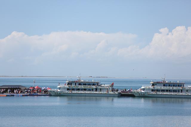 还要再近一点,可以啊,继续买票,买青海湖上的游船,200块一个人,一艘大船去湖上转一圈。从景区门口到湖边太远了,好办啊,买景交车。