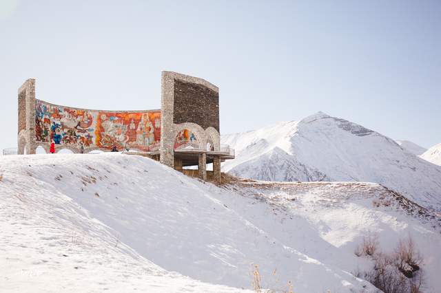 建在公路旁边悬崖之上的格俄友谊纪念碑,是整个军事大道上最醒目的建筑,更是美丽的地标。