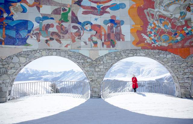 格俄友谊纪念碑建造在军事大道最美的地段,因此它同时也成为一座观景台。站在纪念碑墙的拱形门廊,可以近距离感受高加索山脉的巍峨与壮丽。