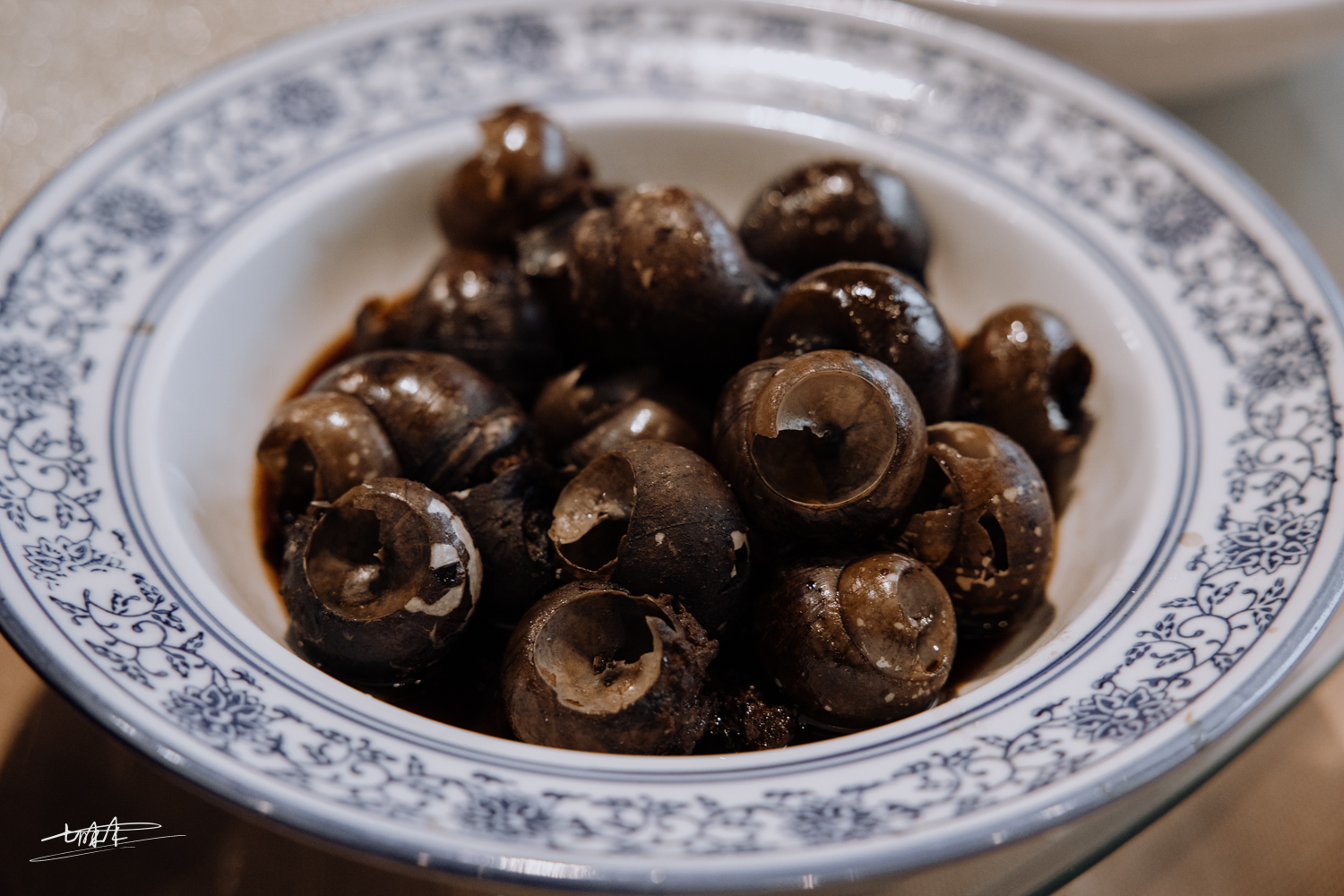 听这个菜名,大概就能知道是什么菜了。在田螺里面塞肉,所以就叫田螺塞肉。据说是要把鲜活的田螺肉挖出来,然后加入猪腿肉剁碎剁细,再加上葱、姜、料酒等调料,最后再将其塞入田螺壳内进行烹饪。这工序有点复杂啊,