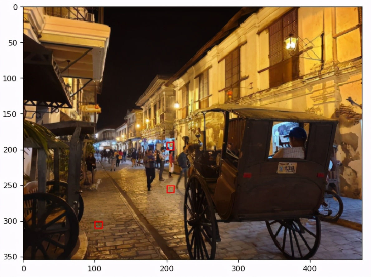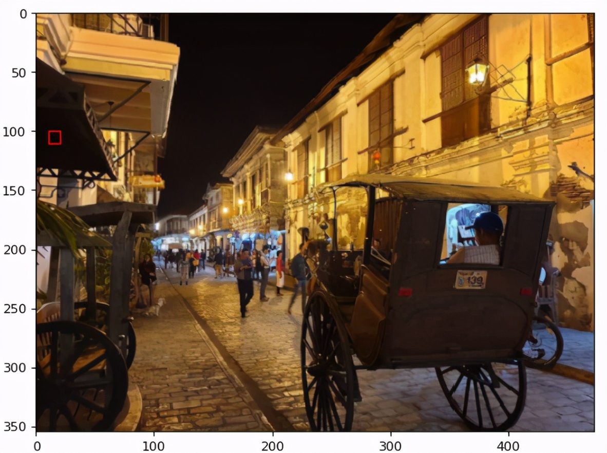 可以看到图像左上角的红色矩形,大多数人可能都怀疑这不是最好的区域,原因是区域的颜色跟其他部分的颜色明显不同。然而出于教学上的原因,我们将使用这个正方形区域并根据它调整图像。