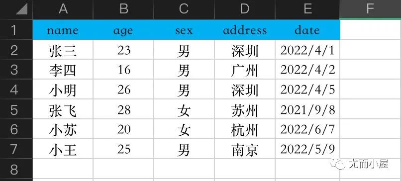 3、Pandas_Excel.xlsx的内容,模拟的完整信息: