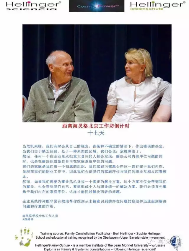 2016海灵格新的家族系统排列中国工作坊(北京、杭州地区)还余少量名额,报名请联系:陈老师,15980990648