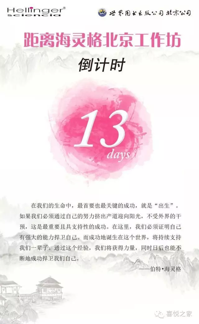2016海灵格新的家族系统排列中国工作坊(北京、杭州地区)还余少量名额,报名请联系:陈老师,15980990648