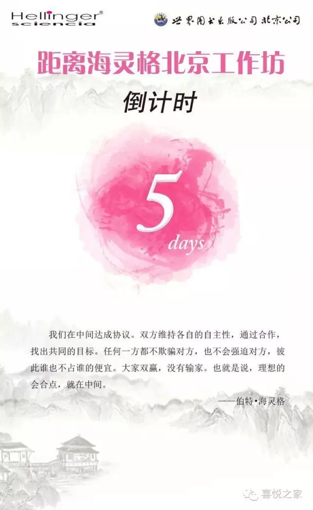 2016海灵格新的家族系统排列中国工作坊(北京、杭州地区)还余少量名额,报名请联系:陈老师,15980990648