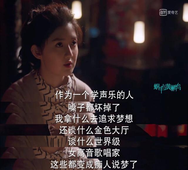 不过,相对于方小莴的自我迷失,还有一个人,则是遭遇了飞来的横祸,那便是高音歌者采薇,曾经雄心勃勃的她,还没走到顶级艺术殿堂,却患上了声带小结的病症,直接影响到自己的发声……对于一名歌唱演员而言,得了这种病,艺术生涯几乎就宣告结束了。确实,各种出其不意的事故,往往会打乱我们奋斗的步骤。