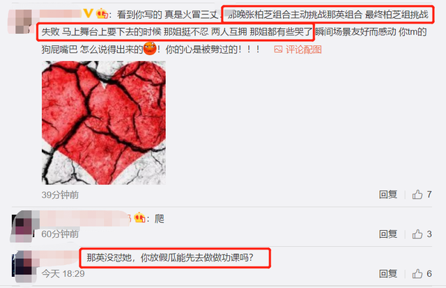 参与录制的网友表示,当天晚上是张柏芝组合主动挑战那英组合,但最终张柏芝挑战失败,下台之前那英非常不忍心,于是主动走过去和张柏芝拥抱,拥抱的时候那英非常动情,甚至差点哭出来。该网友直言,两个人都是非常努力,非常优秀的姐姐,不要胡言乱语。