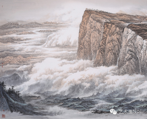 苠重视传统山水画的学习、研究,又不回避社会现实的变化和现代主义的严峻挑战。他以开放兼容的姿态,把现实与心理、物质与精神,个人与社会融合,把客观现实心灵化,主观心灵对象化,努力汲取现代主义的合理内核,对传统革鼎新,使山水画变得更为生机勃勃,焕然一新,颇有现代感。