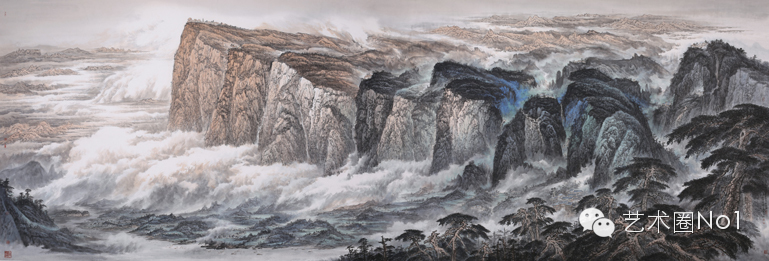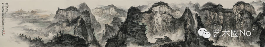 《峨眉朝晖》全景图670×240cm绢本2013年